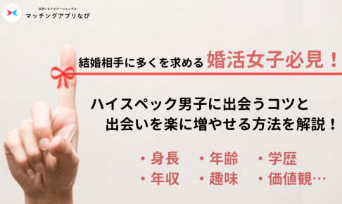 この記事のナビゲーター 柏木 りさこ編集長 マッチングアプリ、婚活パーティ、結婚相談所などに精通。出会いから交際・結婚までサポートに定評あり。 「婚活する時に求められる条件は?」 「希望する婚活条件はどれくらいに設定すれ…