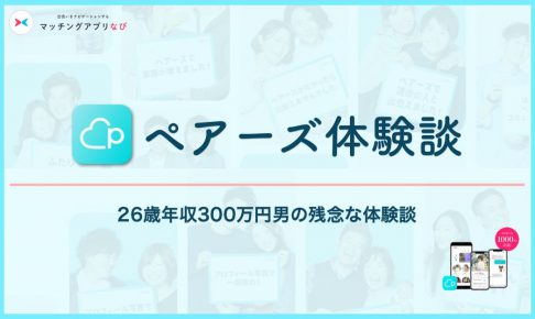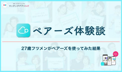 この記事は、東京在住の26歳「高田さん」のペアーズ体験談です。 今まで彼女がいたことがない、アプリやってみよう。 今まで彼女が1人もいなかったので、さすがにそろそろ1人くらい付き合っとかないと 人間としてダメな気がしてペ…