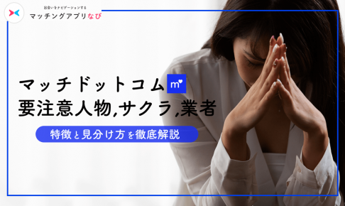 この記事のナビゲーター 柏木 りさこ編集長 これまでに200個以上のマッチングアプリ/サイトを使ってきて、延べ130人以上と実際に出会う。 「マッチドットコムに要注意人物はいるの?」 「サクラ、業者などの危険人物の特徴を…