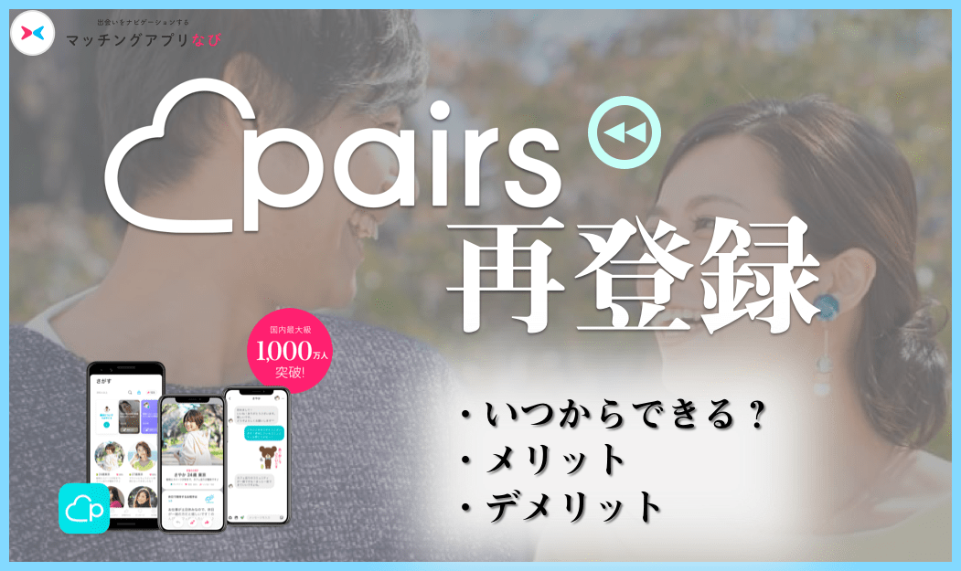 この記事では事情により「ペアーズを退会したけど再登録したい」と思っている方に向けて「いつ再登録できるのか」「再登録するとどうなるか」解説します。